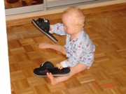 I jak z rączkami - zakładamy kapcie na stópki :)