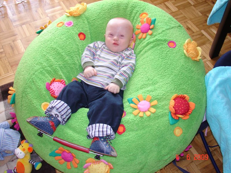 Kuba na pufie otrzymanej w prezencie od miłych ludzików. Chciałem zrobić fotkę jak się uśmiecha, ale to najlepsza mina tego dnia :)
