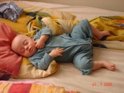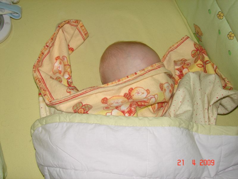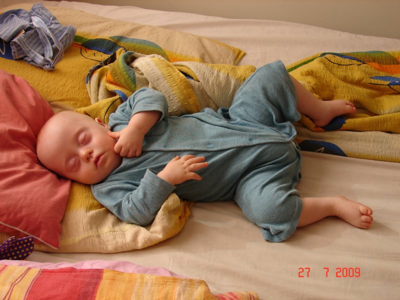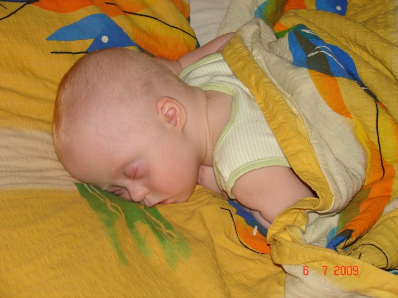 Jak się dobrze ułoży na brzuszku, to śpi jak zabity :)