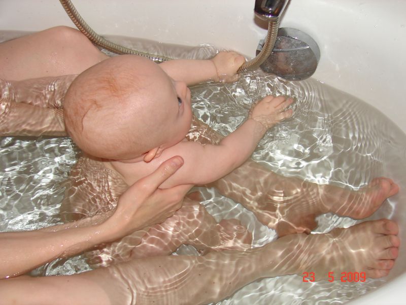 Basen i luzik na macie :) Mama miała dużo większy stres puszczając Kubę :)
