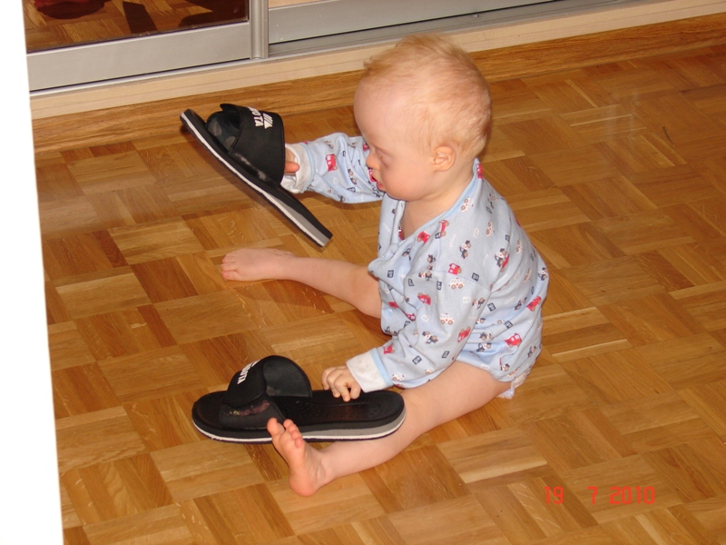 I jak z rączkami - zakładamy kapcie na stópki :)